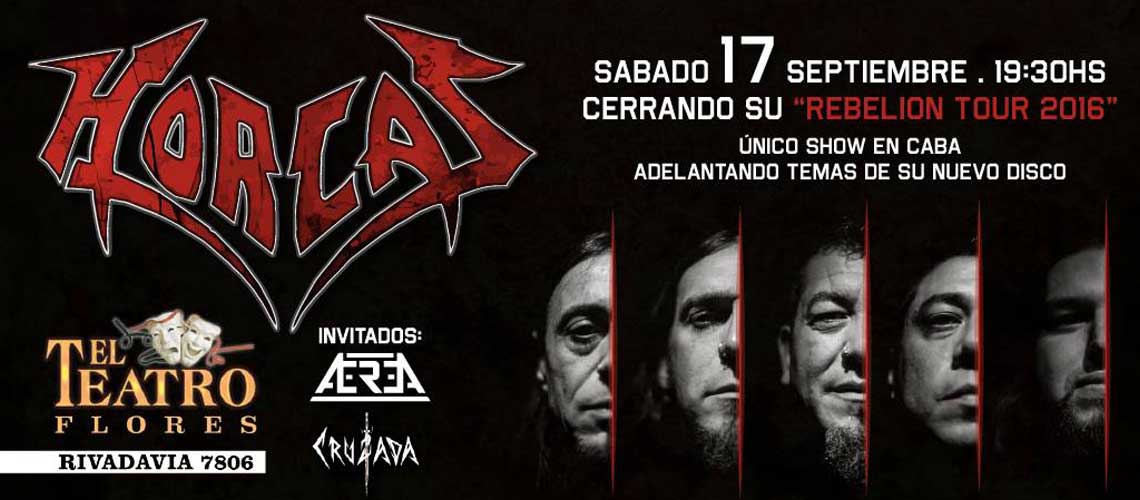 Después del agitado año que tuvieron presentando, “Ahora o Nunca Tour 2015” el que los llevó a recorrer todo el país y el exterior, Horcas se presenta bajo el “Rebelion Tour 2016”, iniciado en el Festival más importante del país “Cosquín Rock” Edición 16, en el Aeródromo de Santa María de Punilla, Córdoba, donde la asistencia del público fue extraordinaria, demostrando toda su pasión hacia la banda. De esta forma, Horcas se planta como los únicos a nivel artístico que están presentes durante 11 años consecutivos en dicho Festival.