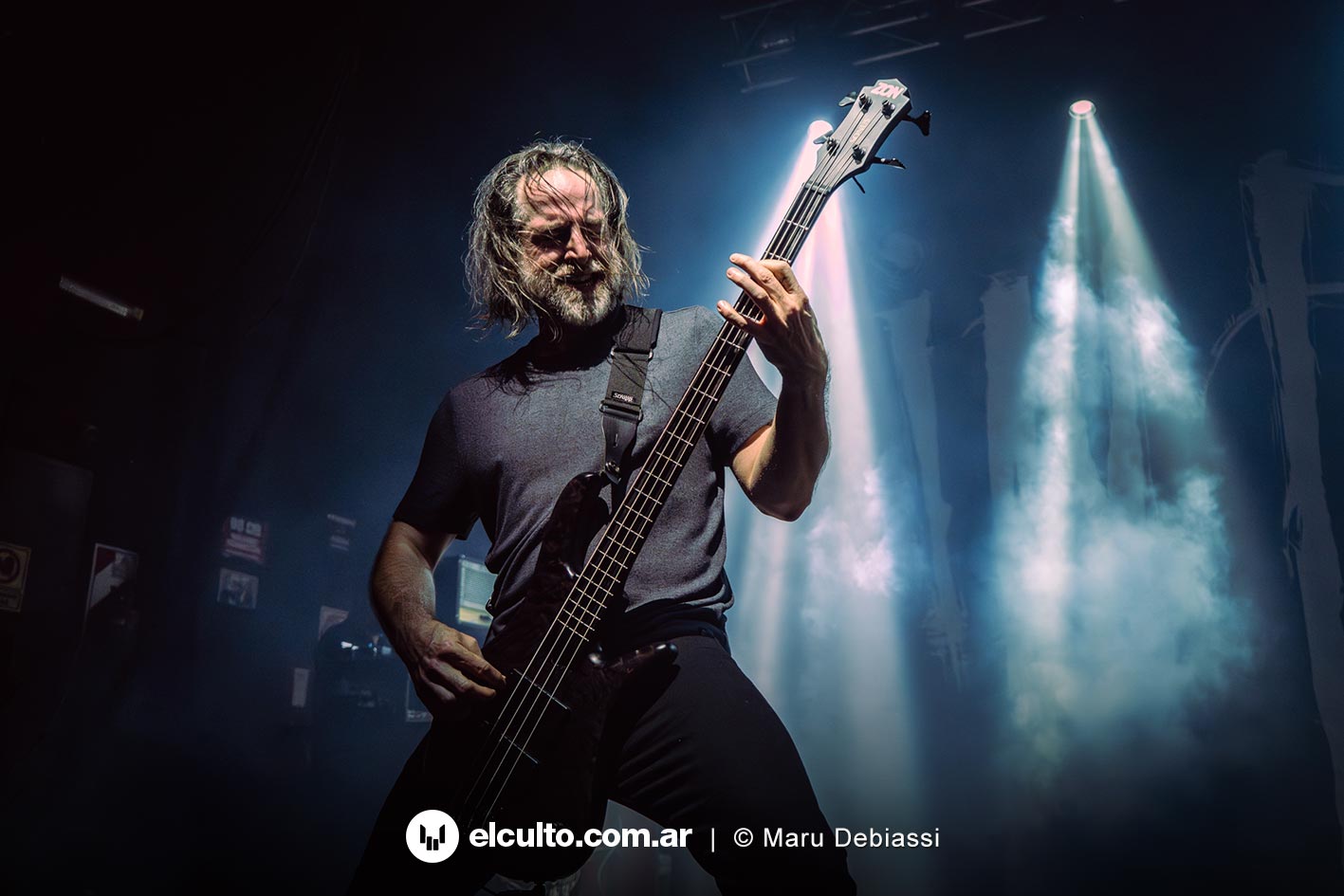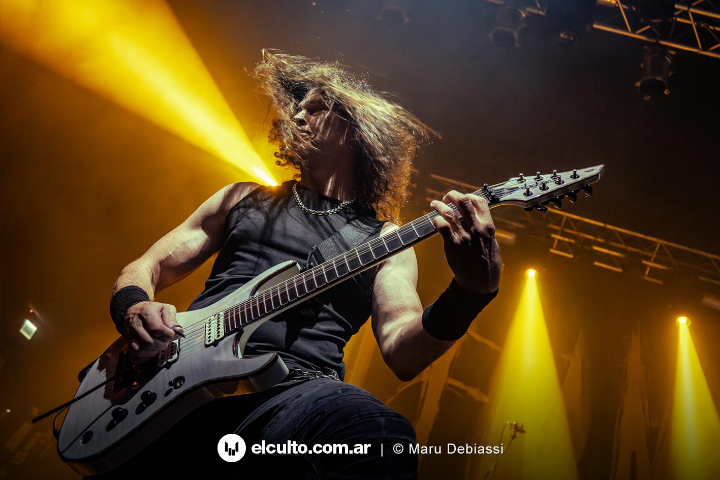 Para cuando los locales Bloodparade habían hecho lo suyo, dejando al público encendido luego del acto soporte, el Teatro mostraba un más que aceptable marco de asistencia, considerando el enorme caudal de shows metaleros que se suceden en estas semanas. Las 21:30 horas fueron la alarma para que las luces se apaguen y salga a escena In Flames, apostando a pisar fuerte de entrada, con el potente riff de “Pinball Map” abriendo el fuego de un recital que nunca cedería en intensidad. “The Great Deceiver” fue el primer tema en sonar de “Foregone”, el más reciente trabajo discográfico de la banda, editado en 2023 y del que cuatro canciones formaron parte del setlist.
