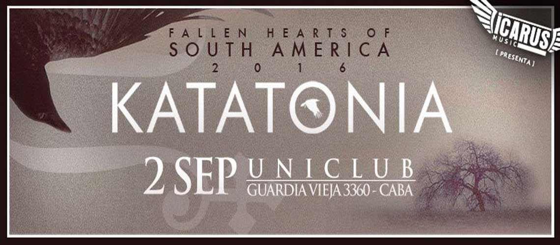 Katatonia, los iconos del metal-rock progresivo, regresan desde suecia a la Argentina en el marco de su ¨Fallen Hearts of Southamerica Tour¨, luego de más de 3 años de ausencia, presentando su décimo disco de estudio ¨Fall of the Heart¨. La banda se presentará con su nuevo guitarrista Roger Ojerson de Tiamat. También será la primera vez con el nuevo baterista Daniel Mojjo Moilanen (Ex Lord Belial). Atmósferas oscuras, pasajes progresivos y una voz motivadora, que dará vida a un show impresionante, digno de no perderse.