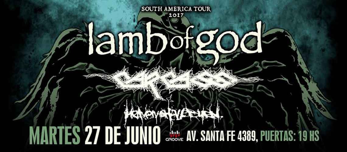 Volumen 4 anunció una de las fechas más grandes de metal, en Junio un impresionante Festival con tres bandas internacionales de primer nivel. Dos de las mejores bandas de la escena internacional extrema juntas por primera vez en Sudamérica, Lamb of God y Carcass junto a Heaven Shall Burn que abrirá la velada. Esta increíble gira comenzará el 25 de junio en Sao Paulo, Brasil y finaliza el 29 de junio en Santiago de Chile. Con fecha en Argentina para el Martes 27 de Junio en Groove (Av. Santa Fe 4389). Las entradas están a la venta por sistema Ticketek.