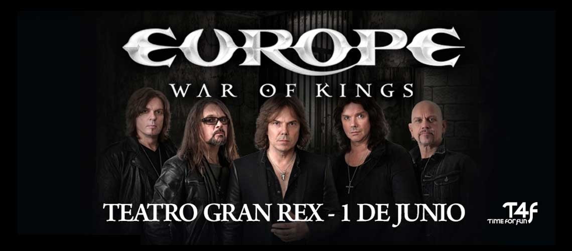 La leyenda del rock Sueco, Europe, se complace en anunciar, su primera gira por América del Sur, luego de 5 años, con fechas en Brasil, Chile y Argentina como parte de su tour “War Of Kings”. La cita es el jueves 1 junio en el Teatro Gran Rex. ( Av. Corrientes 857, CABA).