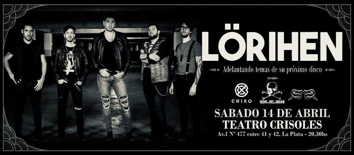 Lörihen vuelve a La Plata en su primer show del 2018 adelantando temas de su próximo disco “Desconexión”. No te quedes afuera, conseguí tu anticipada por sistema ticketek y puntos de venta. La cita es el próximo sábado 14 de abril a partir de las 20hs en el Teatro Crisoles. Bandas invitadas: Seba Souza, Crixo e Hijos del Rigor.