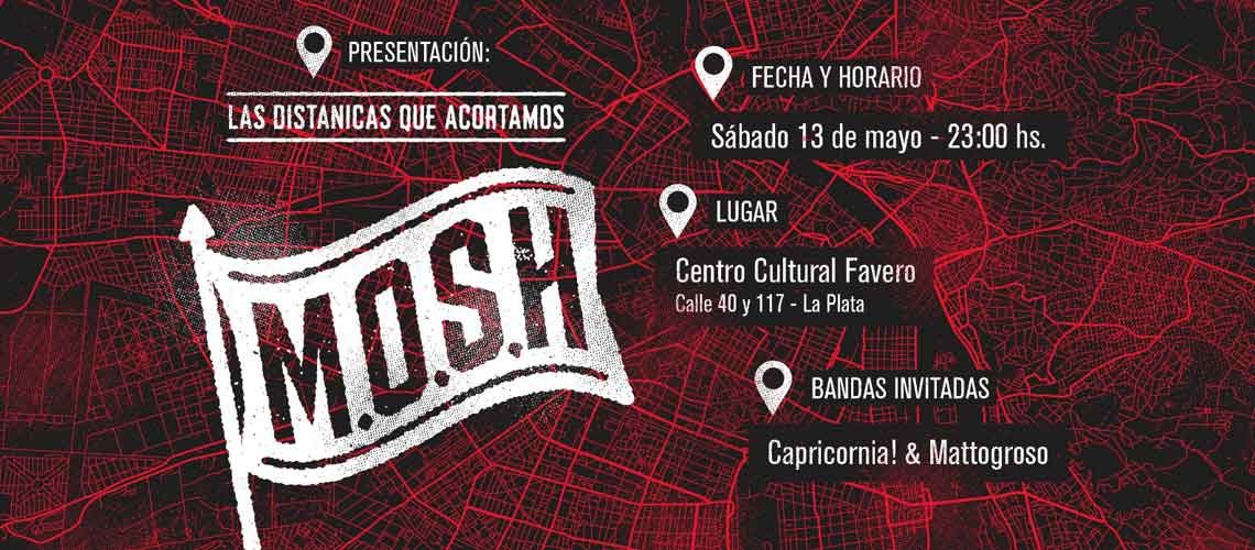 M.O.S.H. presenta su segundo trabajo discográfico “Las distancias que acortamos”, el sábado 13 de Mayo en el Centro Cultural Daniel Omar Favero (117 y 40 – La Plata). El sucesor de “A pesar de las piedras en el camino”, fue grabado en Estudio El Santito y cuenta con la producción de Alejandro Taranto. Además la fecha contará con las presentaciones de Capricornia y Mattogroso, en lo que promete ser una fiesta con muchas sorpresas y una puesta visual nunca antes vista en sus shows.