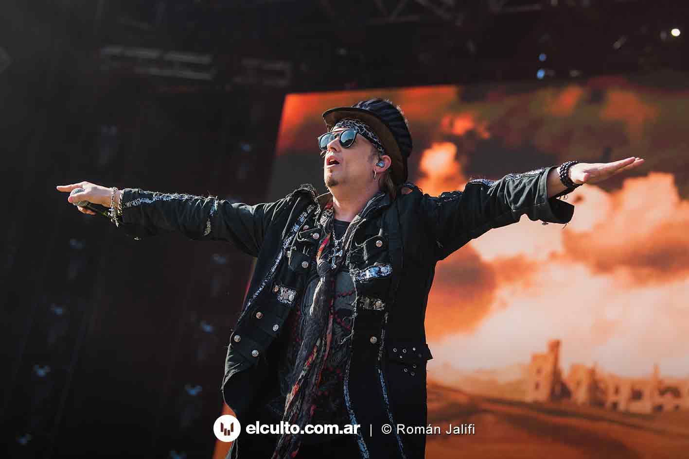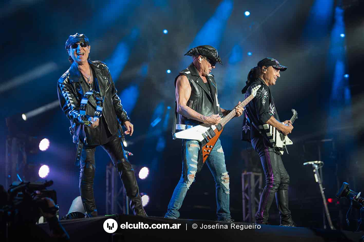 La noche ya había llegado al predio de Villa Soldati cuando era la hora de Scorpions, y los alemanes, comandados por el cantante Klaus Maine y el guitarrista y fundador Rudolph Schenker, arremetieron con una andanada de temas rockeros como “Gas in the Tank”, “Peacemaker” o “Rock Believer”, todos ellos pertenecientes al último trabajo discográfico de la banda, editado el año pasado. Hubo por supuesto momento para el repaso de la extensa discografía de los germanos, y así sonaron “Make it Real”, “The Zoo” y la desbordantemente ochentosa “Bad Boys Running Wild”, todo un clásico de la época. Pero si de clásicos hablamos, promediando el show apareció la ultra reconocida “Wind of Changes”, la oda a la unidad de los pueblos que marcó a toda una era, simbolizada en la caída del muro de Berlín y que encuentra su versión contemporánea con la adaptación de la letra al conflicto bélico en Ucrania, con el azul y amarillo de la bandera ucraniana apareciendo en las pantallas. Los encendedores fueron reemplazados por los celulares, pero el espíritu del tema, y su inmortal melodía silbada, permanecen intactos. También hubo espacio para apreciar los dotes instrumentales del enorme Mikkey Dee, el último baterista de Motörhead que desde 2016 integra las filas de Scorpions, quien brindó su clásico solo. “Blackout” y “Big City Nights” cierran la primera parte del show, con una gran fanaticada local coreando los temas. Luego de un breve intermedio, llegó el turno de los últimos dos temas, que resultaron ser dos de sus máximos éxitos, la balada “Still Loving You” y la poderosa “Rock You Like a Hurricane”, poniendo a todos a saltar al ritmo de su entrecortado riff. Llegaba así el final de la presentación de Scorpions, a puro rock duro, con momentos para sus monumentales baladas y la promesa de un pronto regreso.