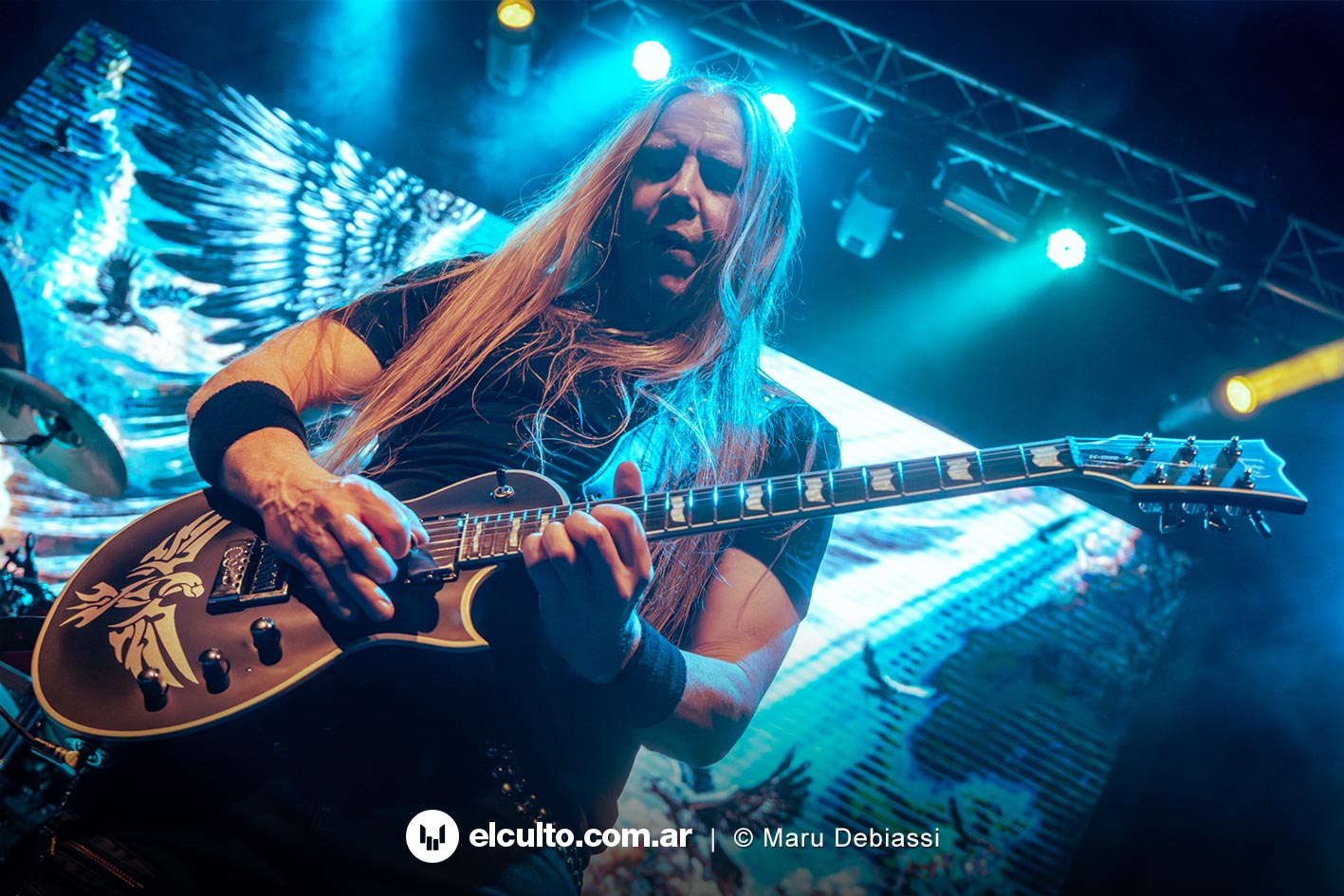 Uno de los puntos destacados fue el trabajo de guitarras. La dupla de Magnus Karlsson y Thalia Bellazecca se movió con sincronía. En canciones como “Nuclear Fire” y “The Hunter”, el ataque de armonías dobles permitió apreciar los arreglos que definen al grupo. Bellazecca, integrada a la dinámica del quinteto, aportó la solidez rítmica para que Karlsson se explayara en los pasajes más técnicos, especialmente en la instrumental “Hallucinations”, donde la banda exhibió su faceta más progresiva.