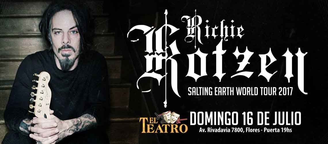 Vuelve a Buenos Aires uno de los guitarristas más creativos del Hard Rock, Richie Kotzen, presentando su flamante álbum “Salting Earth” y repasando clásicos de su carrera como solista y de todos sus proyectos. El virtuoso guitarrista, quién además de contar con una sólida carrera solista, formó parte de Poison y Mr Big, y actualmente es miembro de The Winery Dogs, el power trío que comparte junto a Billy Sheehan y Michael Portnoy. En su sexta visita a nuestro país se presentará el domingo 16 de julio en El Teatro Flores como parte del “Salting The Earth World Tour”.