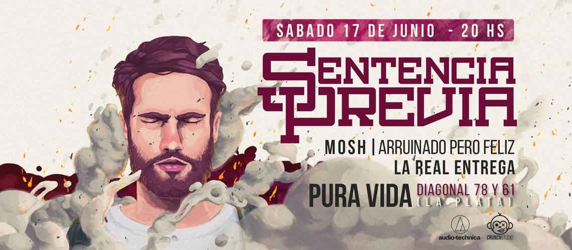 Sentencia Previa llega a la ciudad de La Plata el próximo sábado 17 de junio para presentar su nuevo disco “Catarsis”. Editado de forma independiente por la propia banda al igual que sus trabajos anteriores, el disco cuenta con diez nuevas canciones, también disponible en todas las plataformas digitales. Sentencia Previa tendrá como invitadas a las agrupaciones M.O.S.H., Arruinado Pero Feliz y La Real Entrega. Las entregas se encuentran a la venta en Jason Rock, Jason Stone, Kaunas y por sistema Passline.