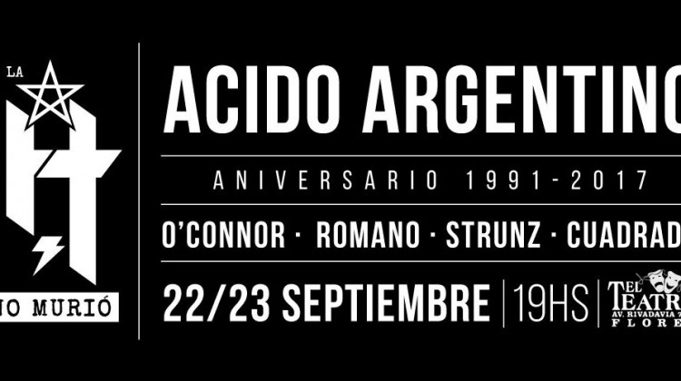 22 y 23 de septiembre / Teatro Flores Venta de entradas por sistema www.tuentrada.com A más de 25 años de la edición de “Ácido Argentino”, …